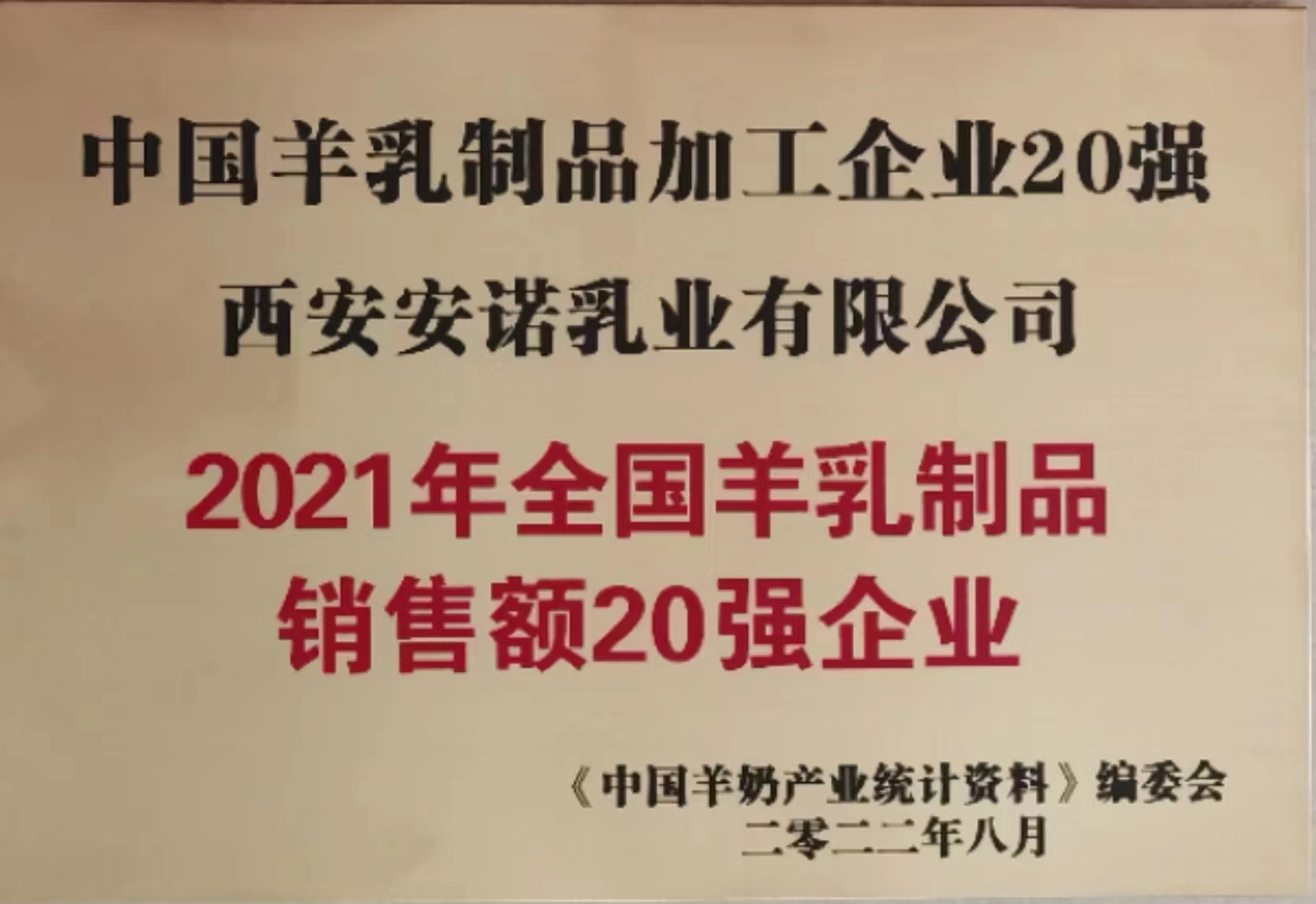 喜訊!安諾乳業榮獲“2021年全國羊乳制品加工企業20強”